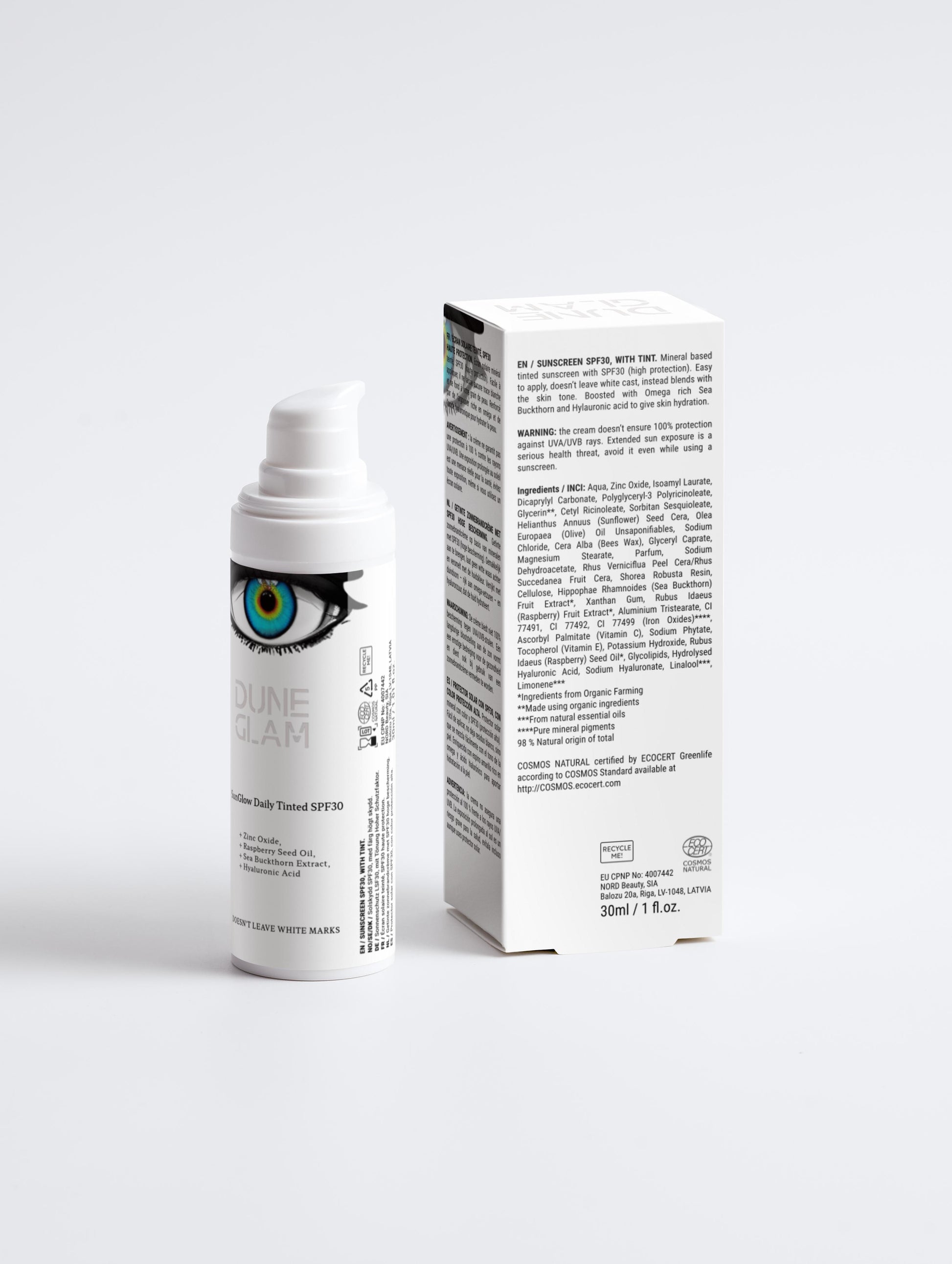 DUNEGLAM Tinted Sunscreen SPF 30 (30ml) – Perfect Complexion with High Protection & Intense Hydration with Sea Buckthorn, Zinc Oxide for Deep Care